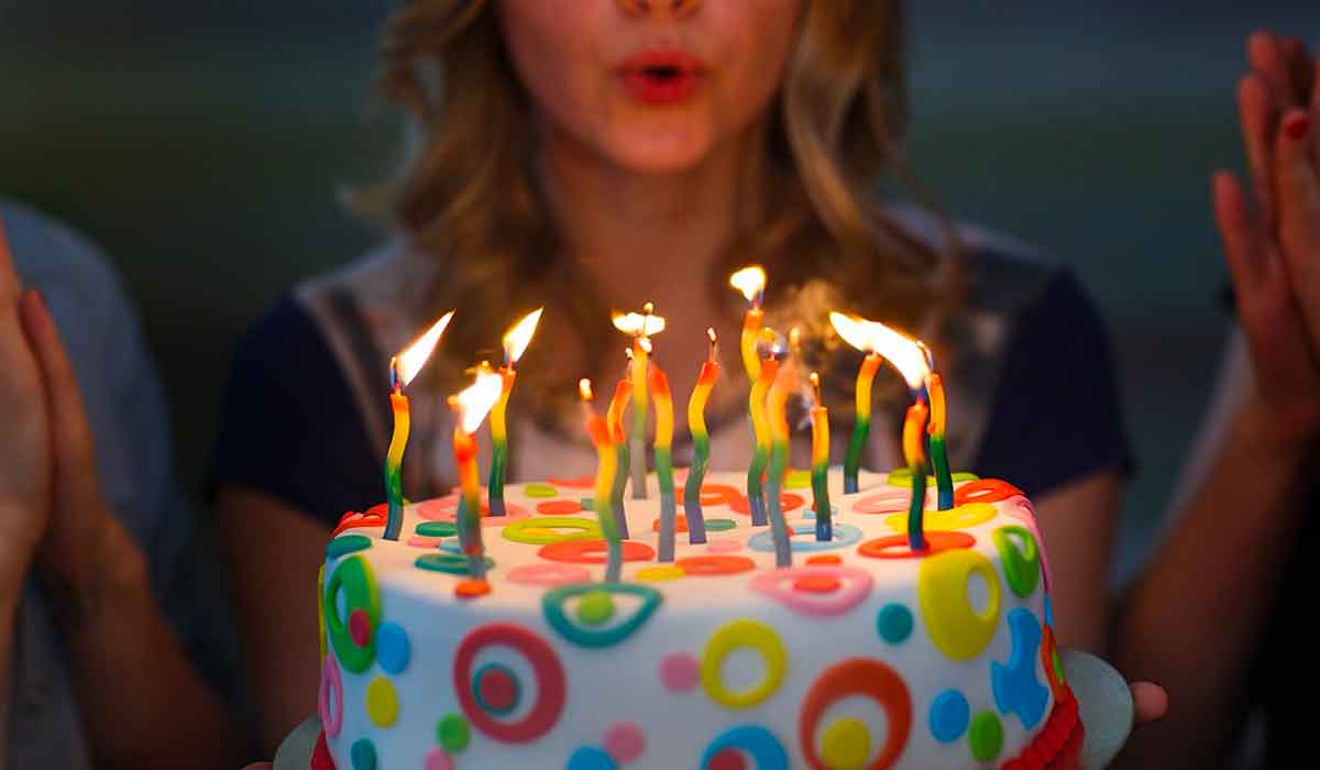 Soplar las velas del pastel